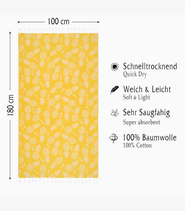Miss Savon Sauna Towel Green – Pineapple Sauna Towel Cotton | 100 x 180 cm | Beach Towel Towels Large Blanket XXL for Sports Fitness Sauna Yoga Mat Bath Towel Sports Towel